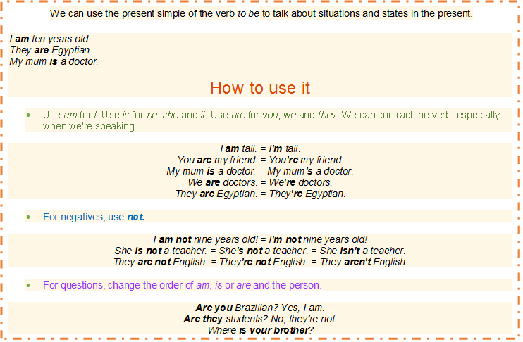 We are learning and practising all the forms of the verb "To Be".